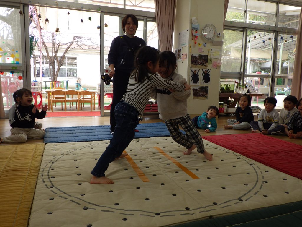 先生や友達と、思いを伝え合ったり力を合わせたりして遊びました