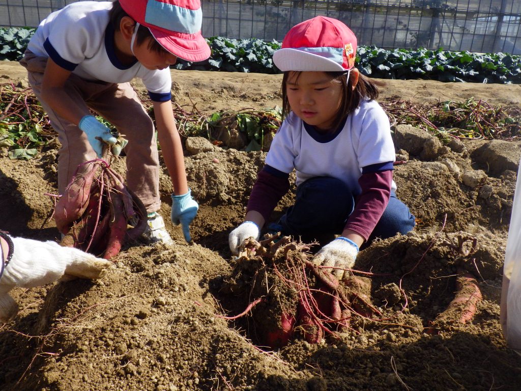 おうちの人と一緒に芋掘りに行ったよ!芋がたくさん掘れて、嬉しかったね
