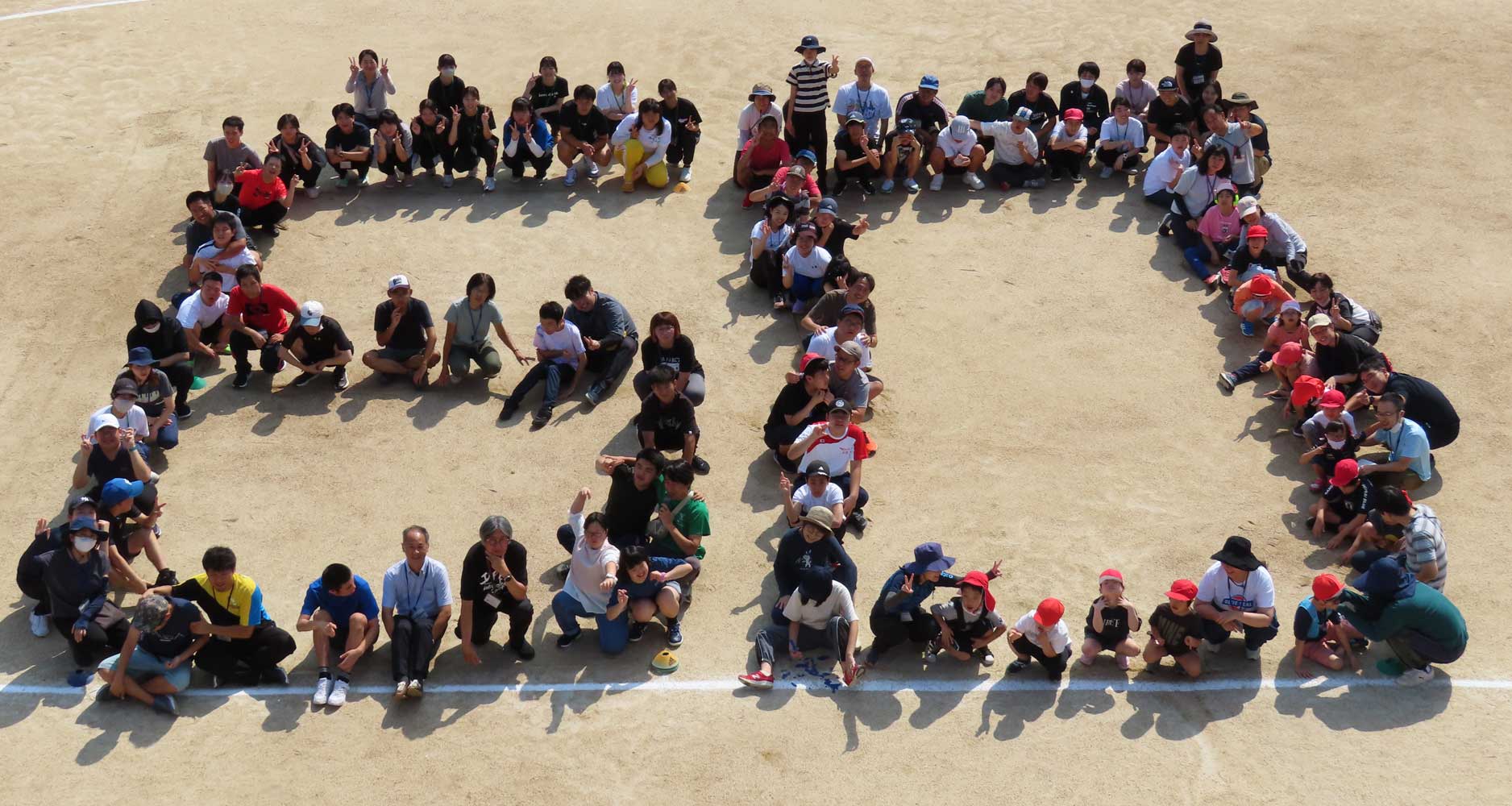 2025年5月10日の運動会にて、撮影を行いました。在校生や保護者、在校生の兄弟、来賓の皆さんなども入って、みんなで写りました。