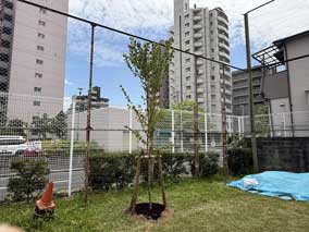 2026年4月18日に運動場、4月27日に中庭と2本の桜を植樹することができました。