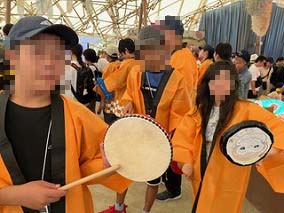みんなが楽しみにしていた大阪・関西万博へ行ってきました!もうすぐ閉幕ということもあり、本当にたくさんの人でにぎわっていました。そんな中でしたが、本校中学部の生徒たちは予定通りフードコートで早めの昼食をとり、1年生はクウェート、2年生はモナコ、3年生は韓国とそれぞれにパビリオンを満喫しました。そして、今回のメインとしてクラゲ館での音楽イベントに参加しました。ワークショップで小さい子どもたちのパーランクー作りのお手伝いをした後、本番の盆踊りライブを思う存分楽しみました!二学期が始まってから頑張って準備してきた成果もあり、とても良い校外学習となりました。