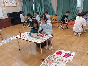 小学部と高等部のふようタイムがありました。今回は高等部が用意したゲーム屋さんに小学部が参加しての交流となります。