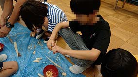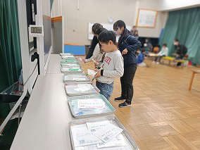 今年度も昨年度と同様に日曜参観にお店屋さんごっこをしました。3年生から6年生が交代でお店屋さんをして、1・2年生と3~6年生が交代でお客さんをしました。2くみは「わっか つみつみ」「ぼーる とれとれ」というプールスティックを活用したゲーム屋さんを、3くみは「しんぶんまる」という新聞を丸めて投げるというゲーム屋さんをしました。日曜参観前にプレ授業をしたこともあり皆お店屋さんとしてもお客さんとしてもルールを守りながら楽しむことができました。