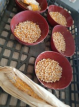 1学期に植えたとうもろこしの収穫を行いました。普通のとうもろこしではなく、ポップコーンにするための品種なので、粒がかっちかち。みんな皮をむいて、一粒ずつ丁寧に収穫しました。おいしいポップコーンができるといいな。