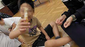 寒い1日ということで、3くみのくらすの授業では、足湯をしました。このクラスは2年前にも足湯を複数回していた経験があり、タライにお湯が張っているのを見ると、何も言われずに靴下やズボンのすそを挙げる児童も。クリスマスイルミネーションの中、クリスマスソングを聞きながら、足湯を楽しみました。
