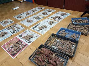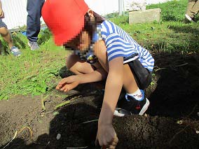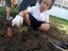 みんな、掘るのに必死で、見えてるけど、なかなか掘り出せれなくて、悪戦苦労。苦労してほれたさつまいもはいっぱいになりました。