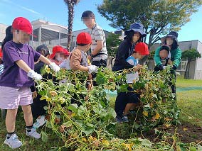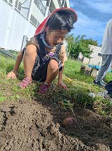 5月に植えたさつまいも掘りをしました。昨年度は不作で細くて小さいいもばかりだったので、できているか不安でしたが、いざ掘ってみると大きいのがたくさん!大きくて掘るのが大変だったけど、皆頑張って掘ることができました。たくさん取れて、運ぶのも一生懸命でした。