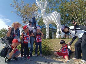 大阪万博に行ってきました。万博の閉幕3日前ということで予想はしていましたが、人がたくさん。迷子にならないように自分たちの手作りのミャクミャクをゼッケンに貼って各クラス分かれての見学。1くみは「ポルトガル館」「クラゲ館」、2くみは「フィリピン館」「クラゲ館」、3くみは「インドネシア館」「コモンズ館」を楽しみました。たくさんの人でしたが、楽しい1日となりました。
