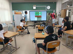 本校では介護等体験の学生が授業に参加し、今後教員になるために学んでいます。今日もたくさんの介護等体験の学生が実習として参加し、子どもたちと一緒に過ごしました。