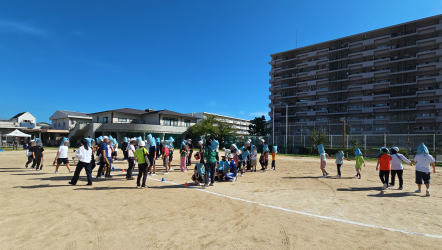 運動会も終盤。保護者の皆様とともに恒例の「ふよう音頭」を踊りました。