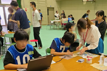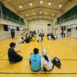 午後は体育館にて大学生が考えたアクティビティを一緒に楽しみました。笑い声が絶えないとても充実した時間でした。