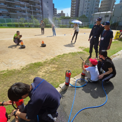 今年3月に締結した大阪市平野区との「防災に関わる協定書」に基づいた取り組みを実施できただけでなく、それぞれの体験活動のなかで、平野消防署、平野区役所、喜連地域連合、平野五校園連合会の皆様と和気藹々とコミュニケーションをとることができ、日常的な防災活動についての情報を共有することができました。