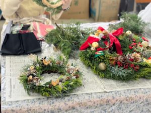 PTAサークルのひとつ「ハンドメイドサークル」では、フレッシュな枝を使ったクリスマスリースを制作しました。