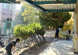 • 体育館まわりの落ち葉掃除