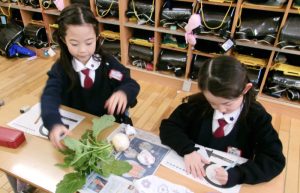 1月26日(月)、PTAサークルのAKPで育ててきたかぶを、1年生の子どもたちと一緒に収穫しました。