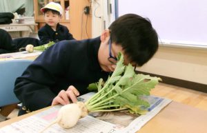 収穫したかぶの一部は、給食のお味噌汁の具として提供されました。