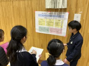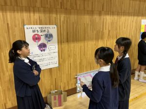 6年生は「未来探究科」の学習において、これまで一人ひとりが深めてきた「幸福」についての探究発表を行いました。