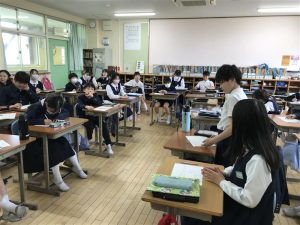 6年生の家庭科では「お金やもののつかい方」を考えています。本校の児童は修学旅行に「おこづかい」を持っていきます。それぞれの土地で記念になるお土産を購入するためです。修学旅行は「お金のつかい方」を考えるとてもよい機会となっています。そこで、自分にとって「より良いお金のつかい方」を考えるために、お金とはどういうものなのか、おこづかいは必要なのか、について考えました。議長と書記を立てて、おこづかい必要派と必要ない派に分かれた討論会では、「大人になる前にお金のつかい方を学ぶために必要」「おこづかいは家族が働いて得た収入。貴重なものだからつかうのが申し訳ない。だから、いらない」といった意見が出ていました。