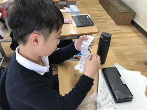 子どもたちは自分なりに色々と考えて、「これを買おう」という商品を選んで、先日、買い物にでかけました。「先生、思った以上に他に商品がいっぱいある!選びなおしていいですか。」「お家の人にも買ってあげたい。歯にいいものを選びたい。」「思ってたものが買えてよかった!早速使ってみる。」等々、買い物中にも色々な感想が出ていました。歯ブラシの買い物を通して、子どもたちは「消費活動」の難しさや大切さを感じたのではないかと思います。