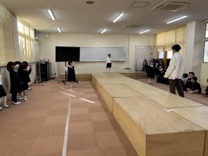家庭学習期間が明けて、子どもたちは「お気に入りの服」を紹介すべく、ファッションショーの練習に取り組んでいます。
