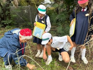 未来探究科「いきもの・ザ・ワールド」の学習では、学校のむしむし村を生き物にとってすみやすい環境にしたいと、自分たちにどんなことができるか考えています。