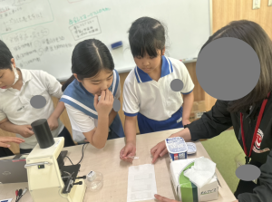 身近な発酵食品にはじまり、それらの共通点や良さ、さらにはヨーグルトにおける乳酸菌がどのような働きをしているのか、実験をしたり、実際に顕微鏡で菌を見たりして学習することができました。