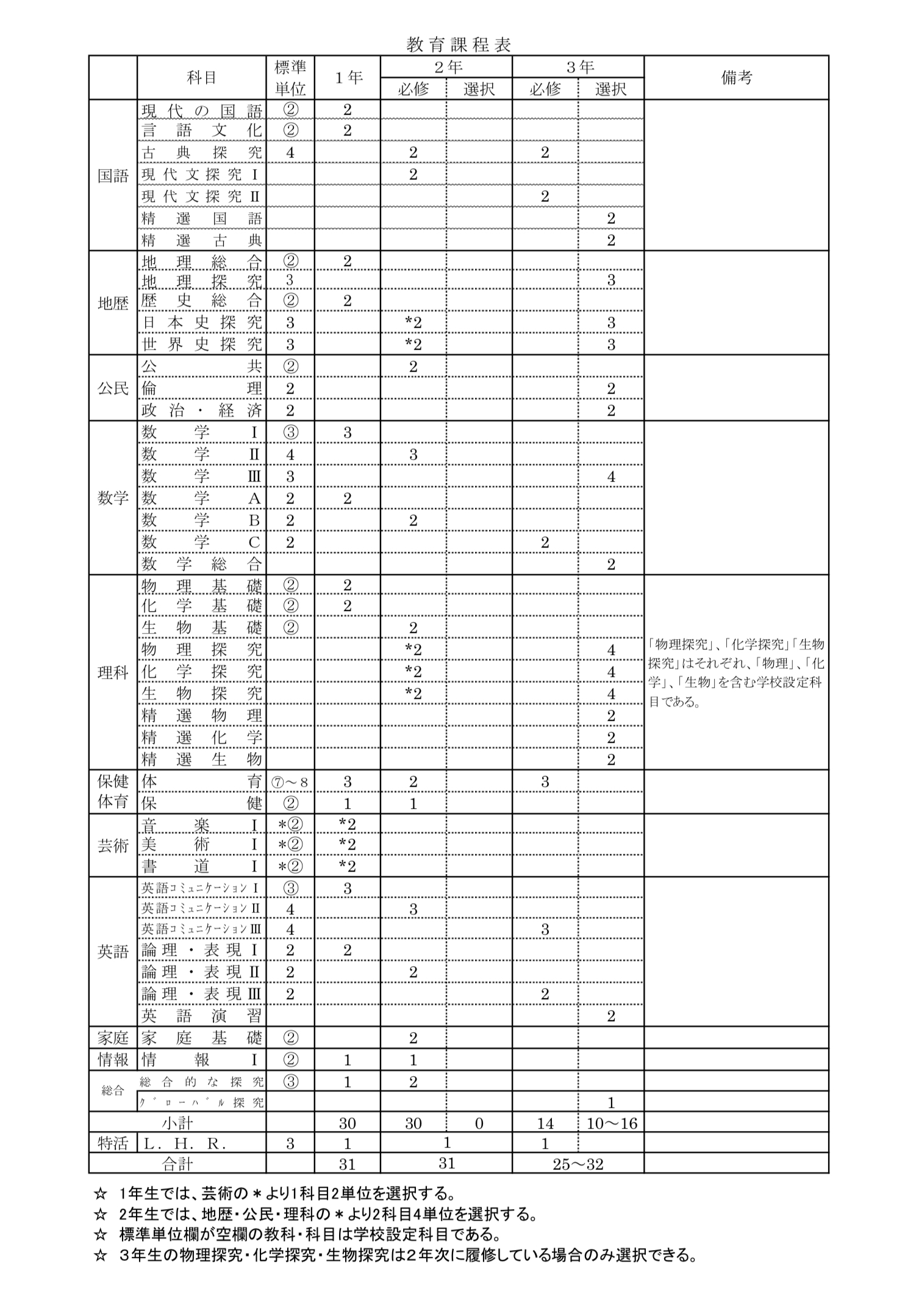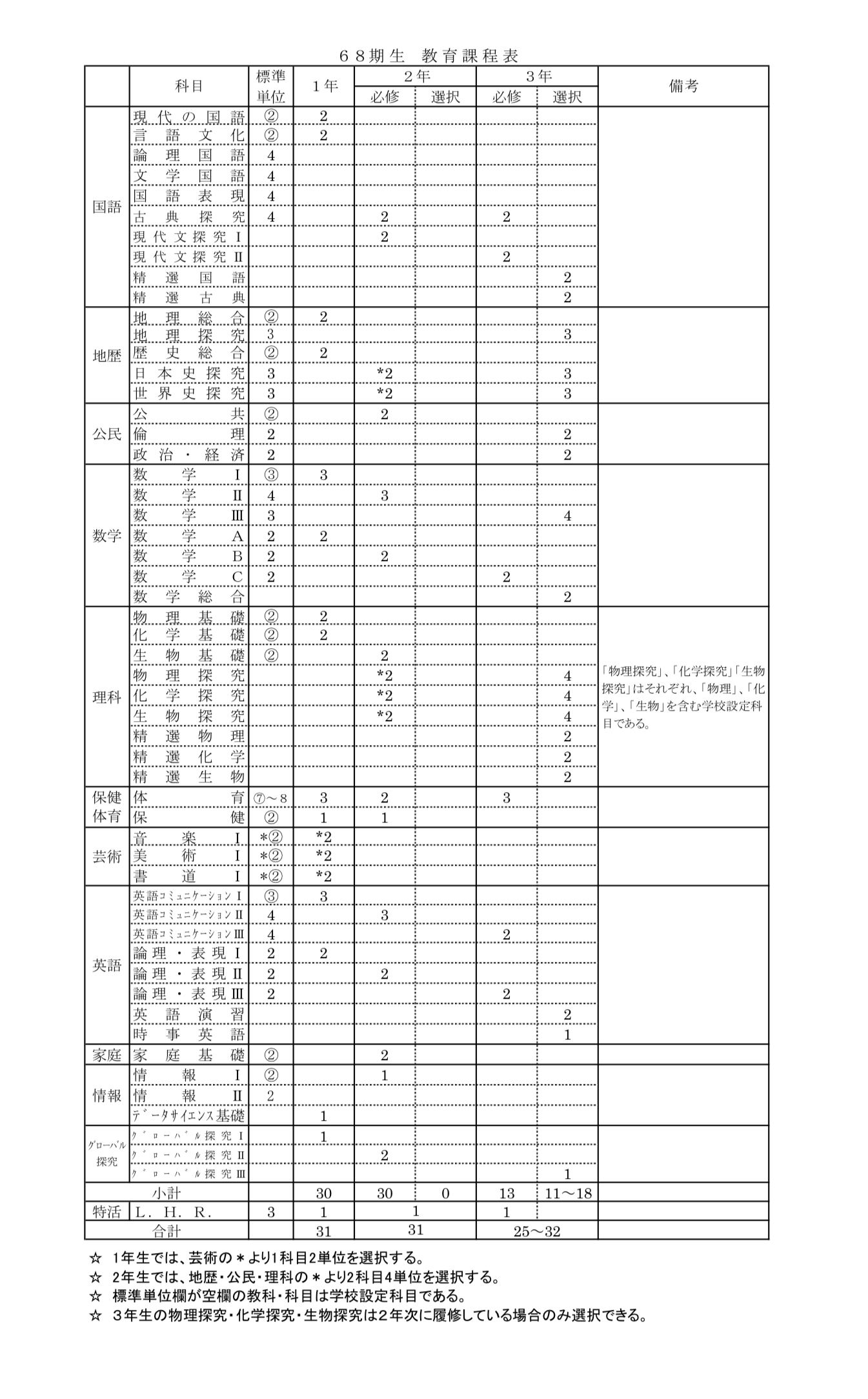 教育課程は文・理などのコースを設けていないのが特徴です。