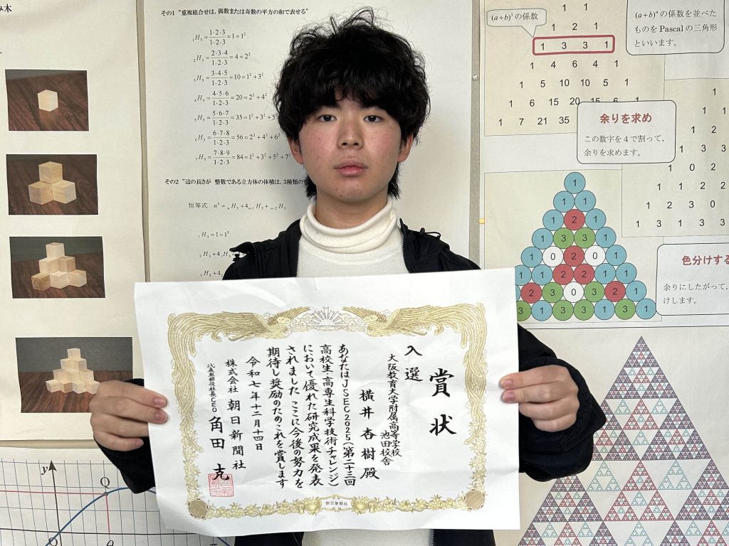 普段から数学が好きでコツコツと研究を進めている成果が発揮できました。