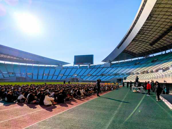 1ヶ月ほど前から体育の授業で練習をしてきており、走るペースや息づかいを色々と研究し自分に適した走り方を作ってきました。中学1年生から高校2年生までが、競技場内とおよそ3 kmの公園内マラソンコースを周回しました。1年間で自身にどれほどの成長があったかを確かめられるという面白さがあります。