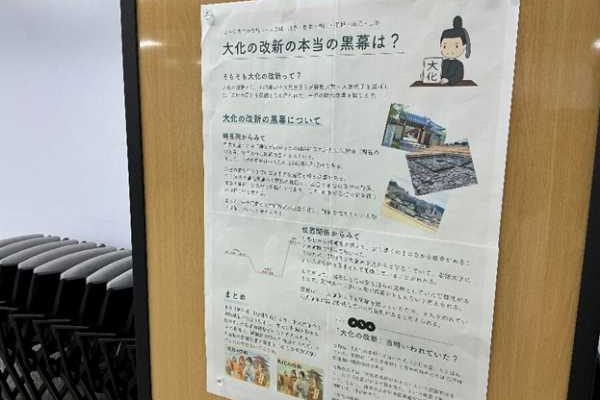 先日の明日香村への遠足では、どの班も自分たちのテーマに向き合い、事前学習から事後のまとめまで、一生懸命に取り組んできました。 そして本日の5・6限目に、みらい教育共創館にて、その学びの成果を班ごとに発表する時間を持つことができました。